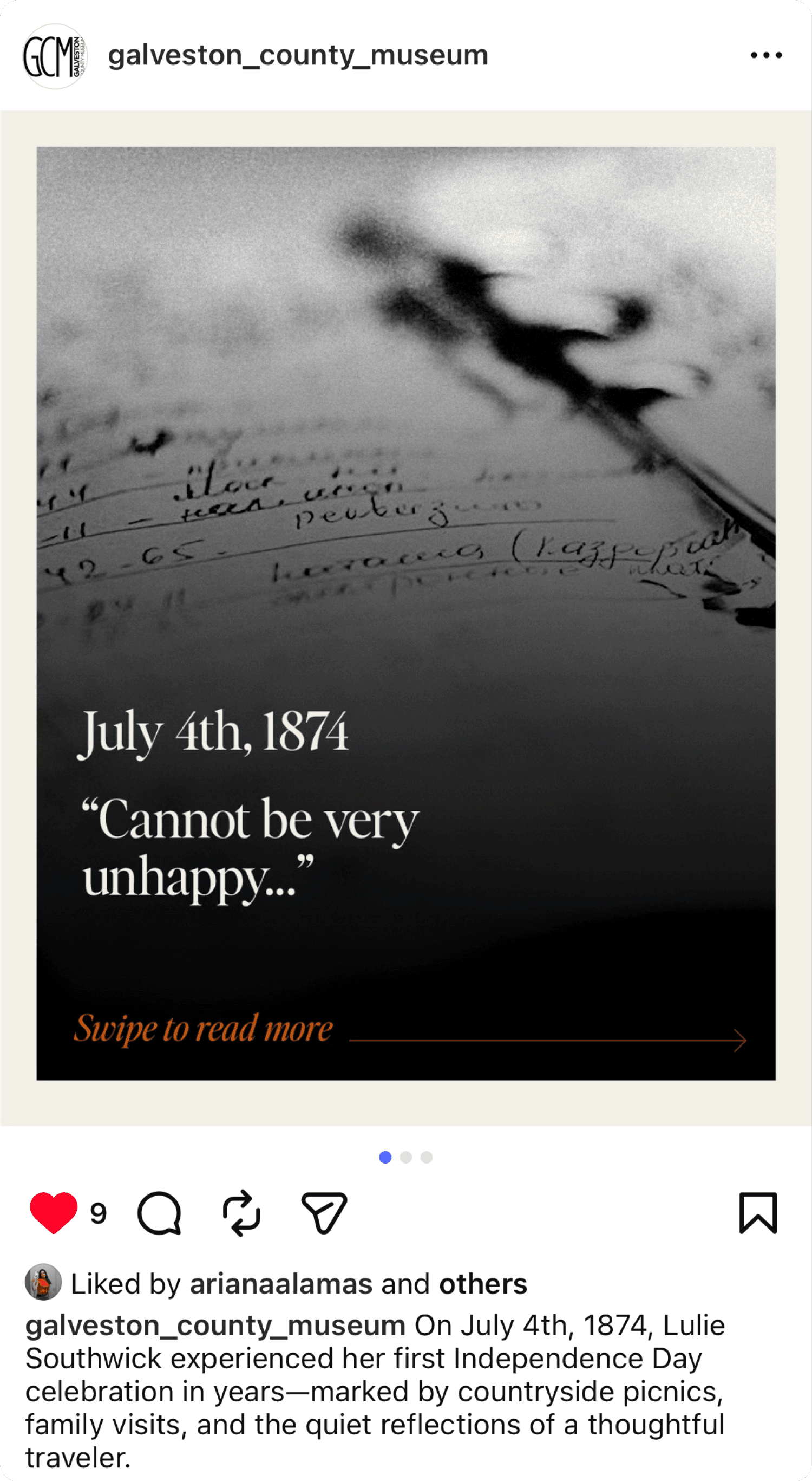Led themed social campaigns for Galveston County Museum including “Galveston Before & After,” artifact diary highlights, influencer collaborations, and a 50th-anniversary podcast series, posting consistently 2–3 times per week to boost engagement and event visibility.