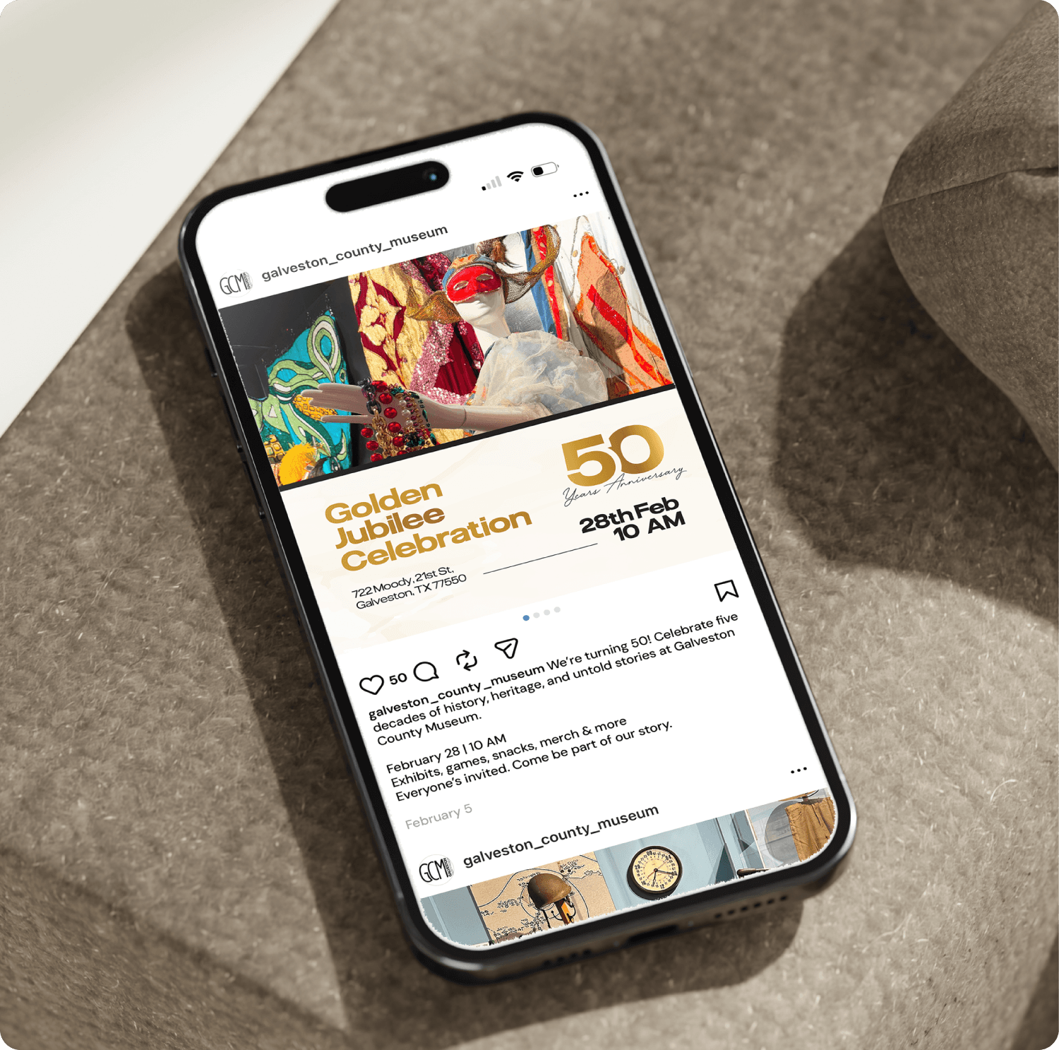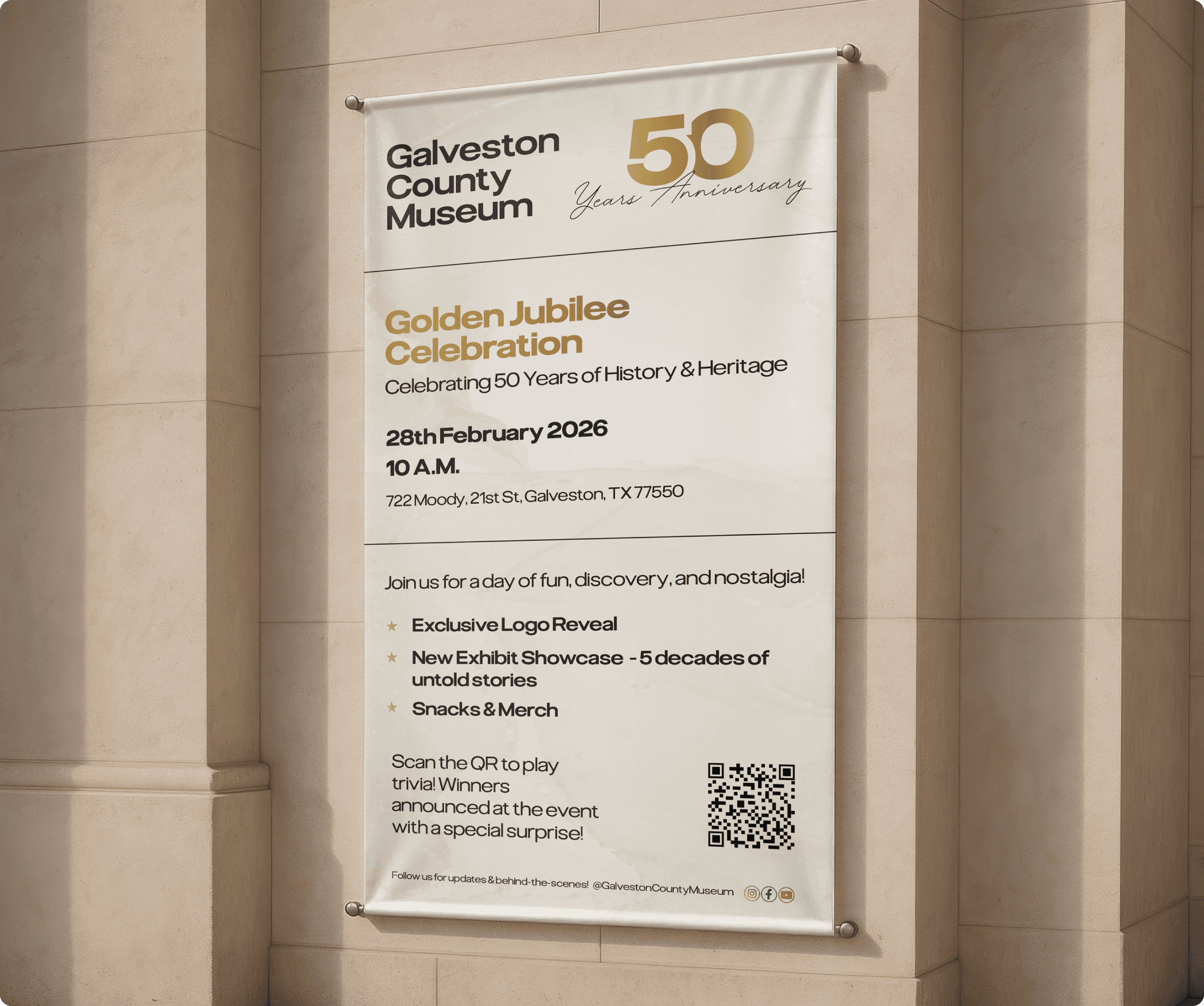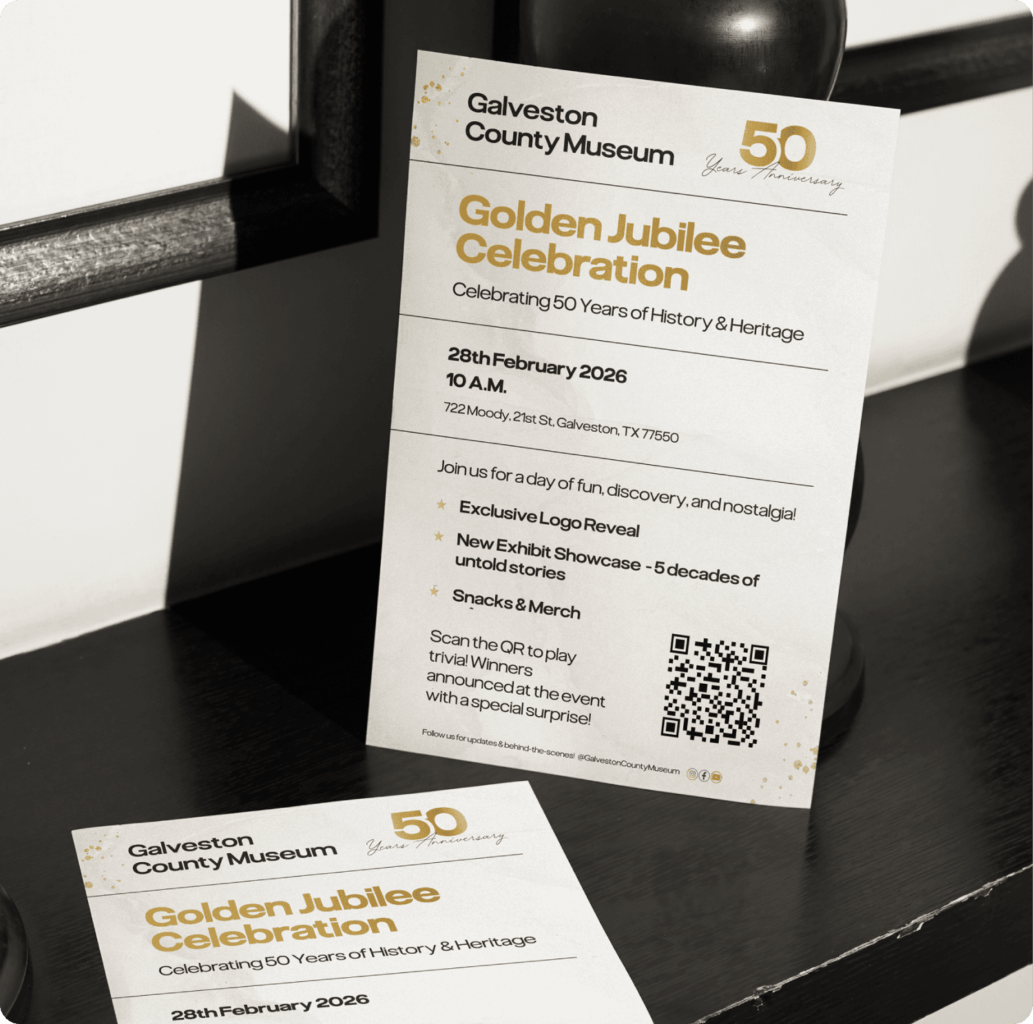 Galveston County Museum is a local history institution dedicated to preserving and sharing regional heritage. I led visual and digital design efforts for the museum’s 50th anniversary rebranding, creating print and social media assets to refresh the brand presence and increase community engagement.