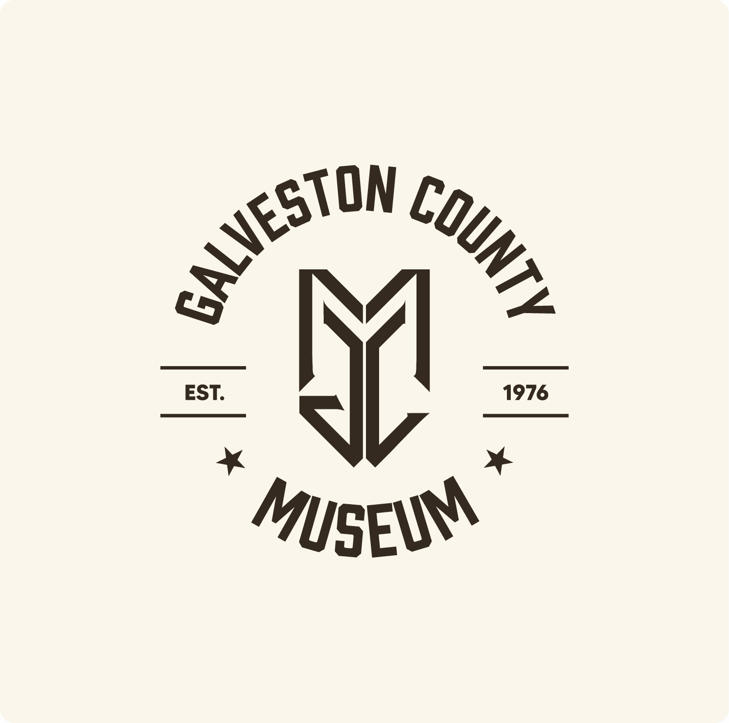 The new identity features a custom monogram that geometrically weaves together the initials GCM. Built on a mathematical grid, the design avoids "beachy" clichés, instead using a symbolic anchor at the base to honor Galveston’s port history. I paired the mark with a clean, geometric sans-serif font, adjusting the spacing between the letters to ensure the logo feels modern and remains easy to read. The final Golden Jubilee color palette was chosen specifically to elevate the museum's image for its 50th-anniversary celebration.
