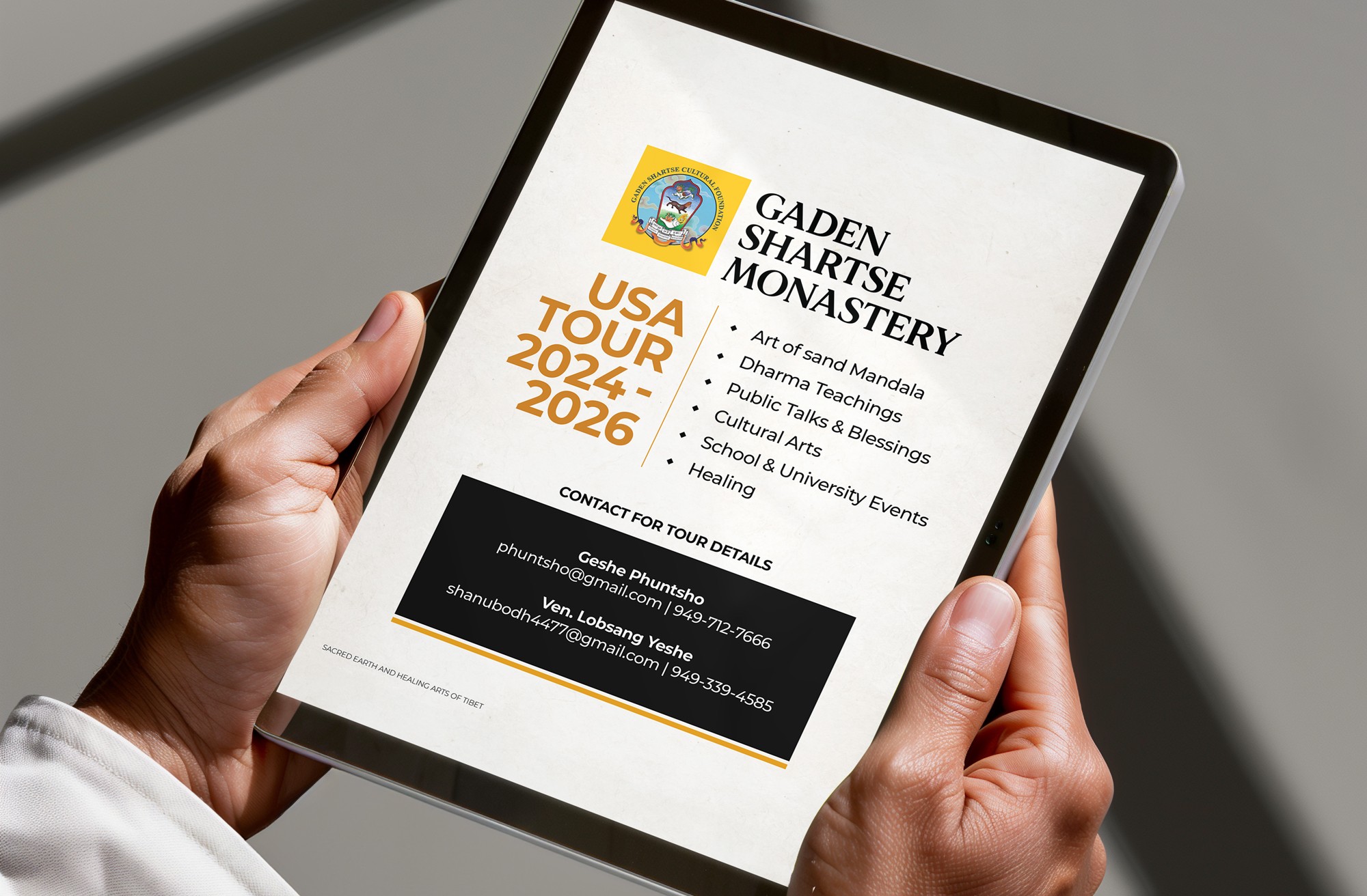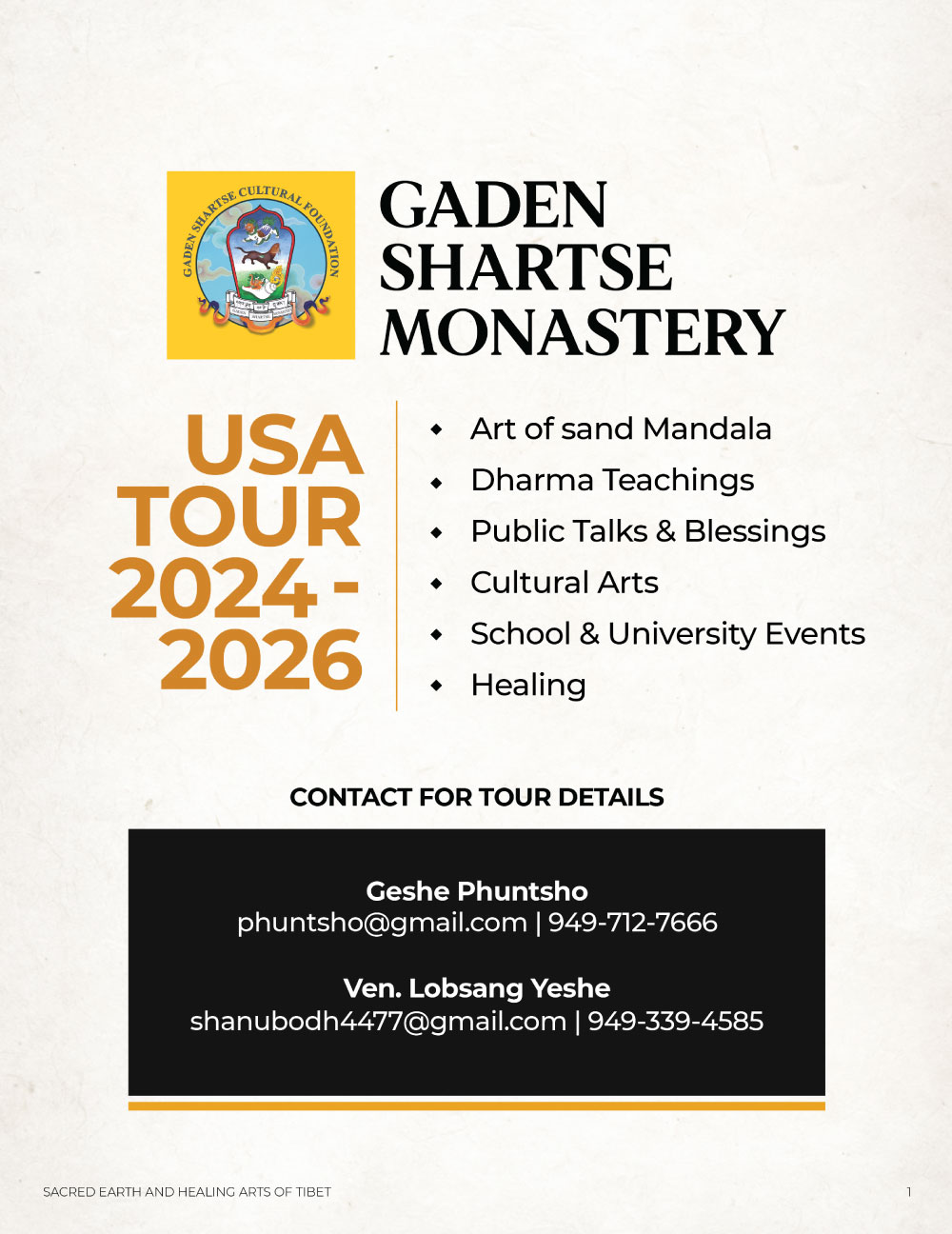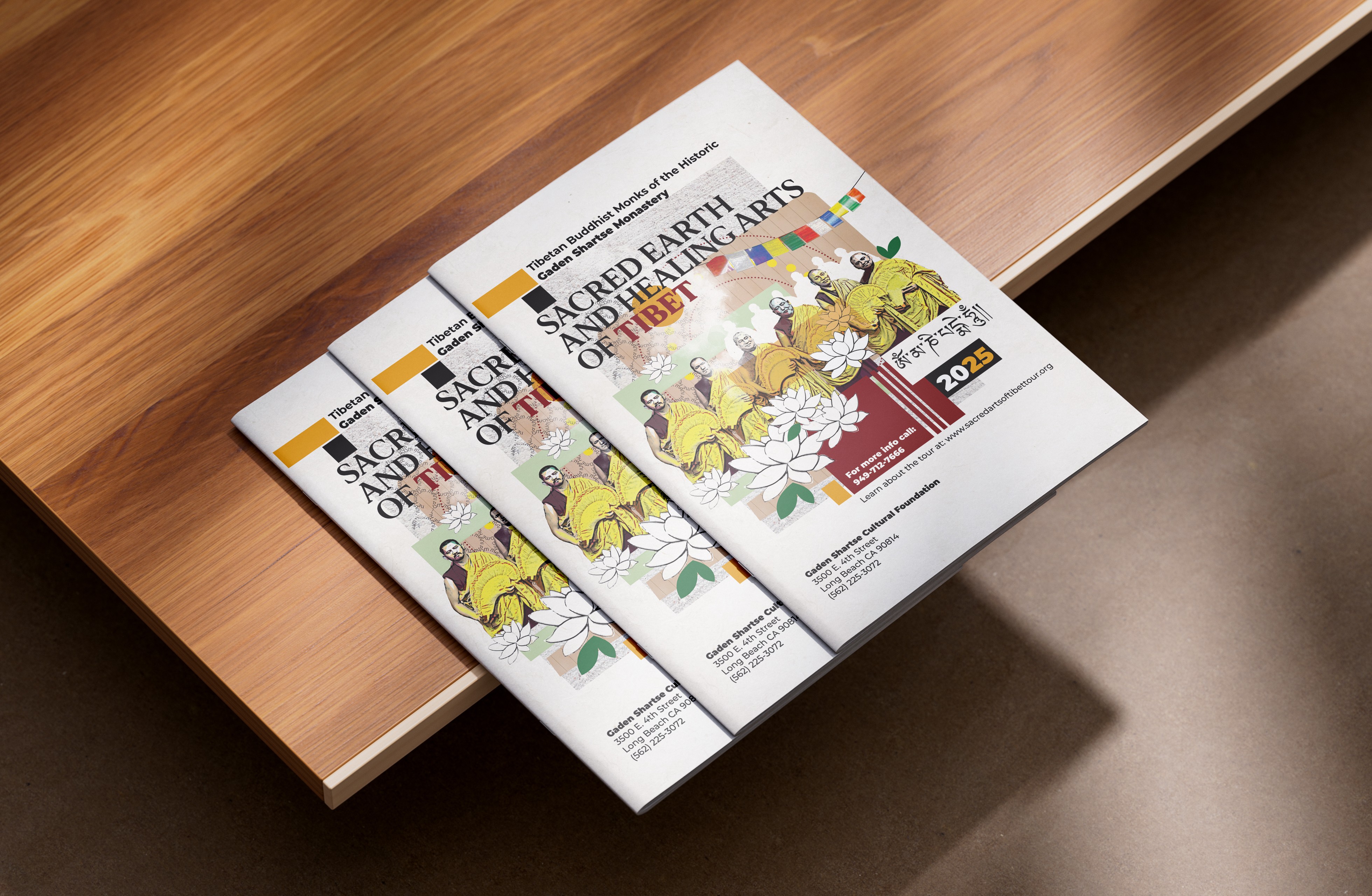 Gaden Shartse Monastery is a renowned Tibetan Buddhist monastery dedicated to preserving and teaching classical Buddhist philosophy, debate, and spiritual practice, while sustaining centuries-old monastic traditions. This project focuses on designing a comprehensive press kit for their USA tour to communicate their mission, promote teachings and workshops, and support fundraising efforts that help sustain the monastery and its educational initiatives.