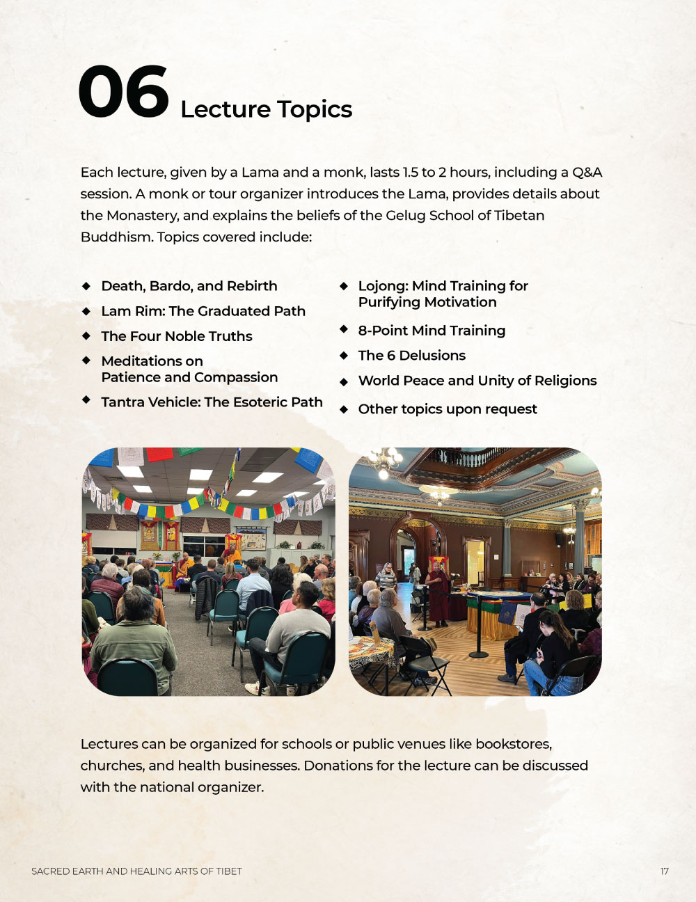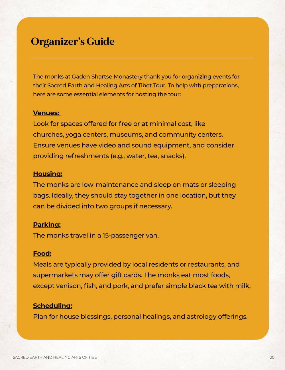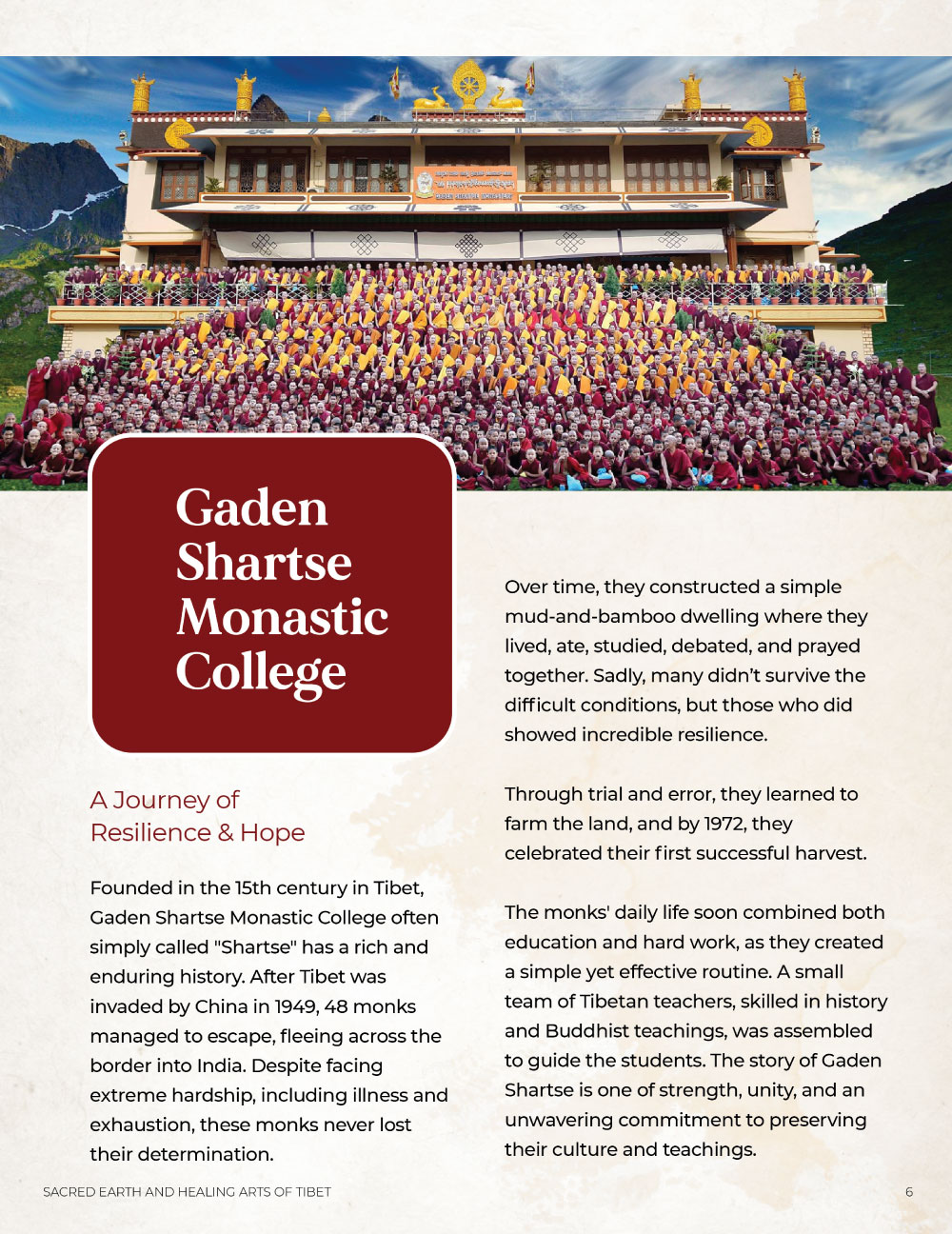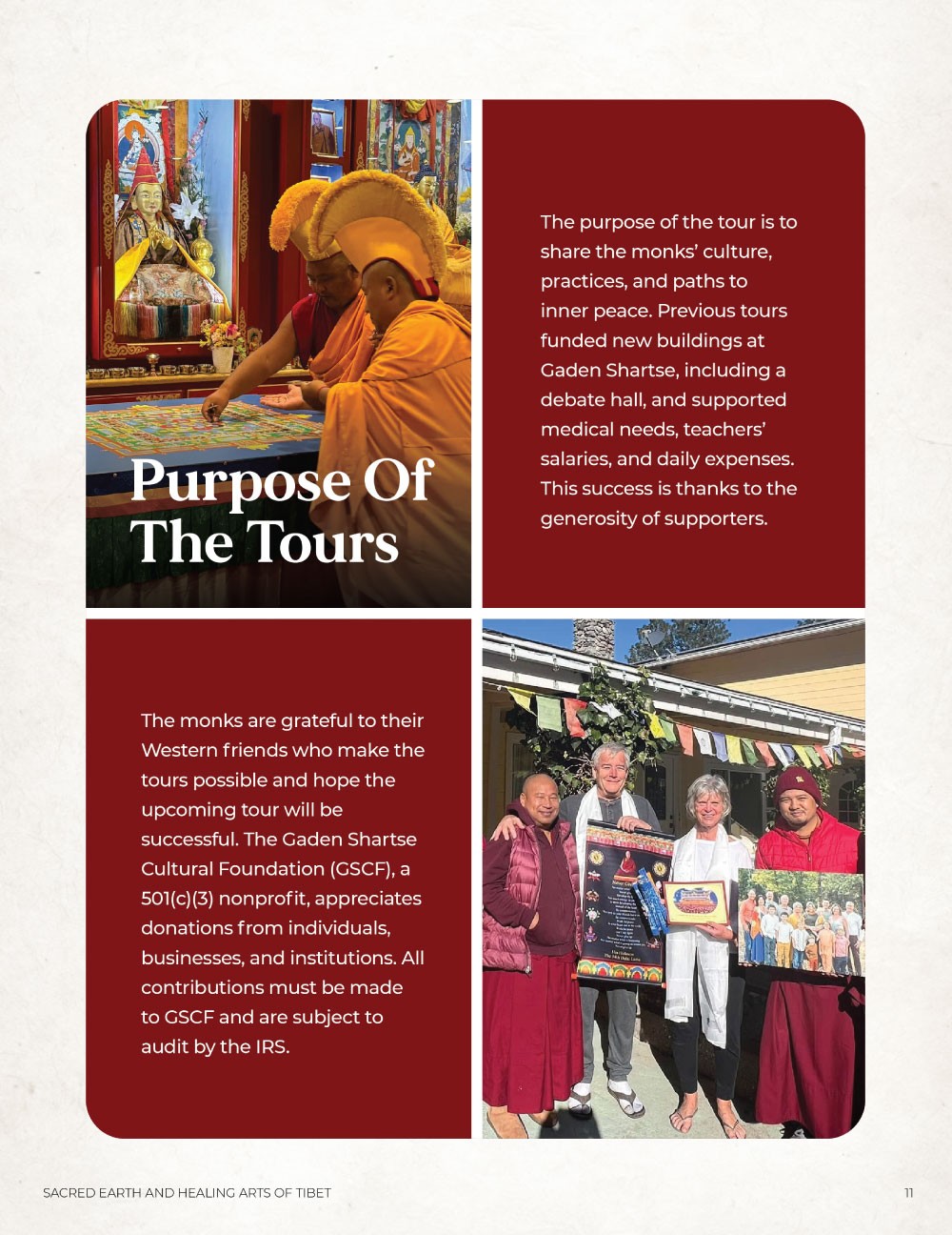 Gaden Shartse Monastery is a renowned Tibetan Buddhist monastery dedicated to preserving and teaching classical Buddhist philosophy, debate, and spiritual practice, while sustaining centuries-old monastic traditions. This project focuses on designing a comprehensive press kit for their USA tour to communicate their mission, promote teachings and workshops, and support fundraising efforts that help sustain the monastery and its educational initiatives.