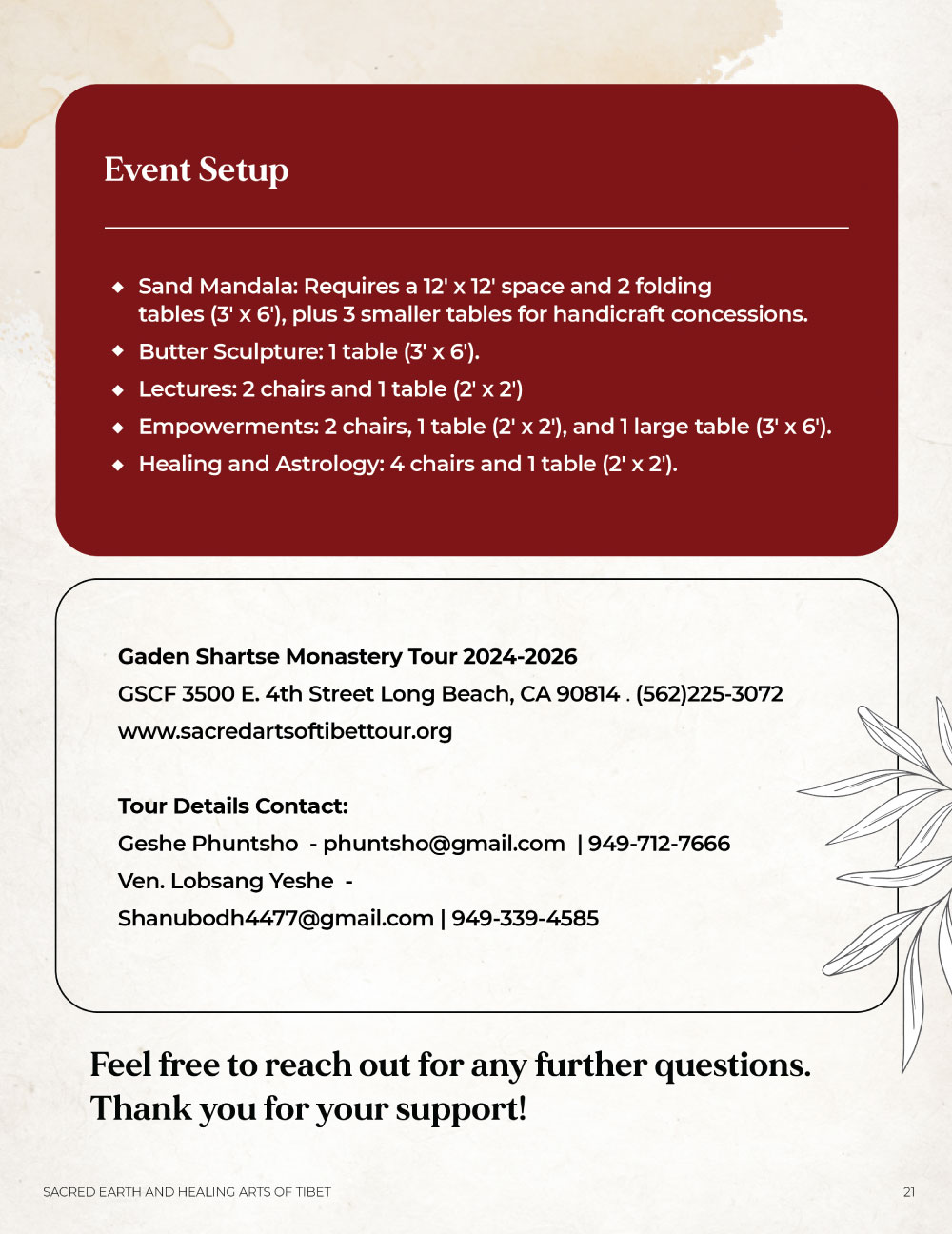 Despite their rich cultural offerings such as Sand Mandala workshops and sacred teachings, the monastery lacked high-quality, standardized promotional materials to engage Western media and host institutions. They needed a versatile tool to bridge the gap between their remote Indian location and global fundraising targets. The challenge was to organize dense historical and academic information into an accessible global quality document that could serve as both a brand introduction and a logistical hosting guide.