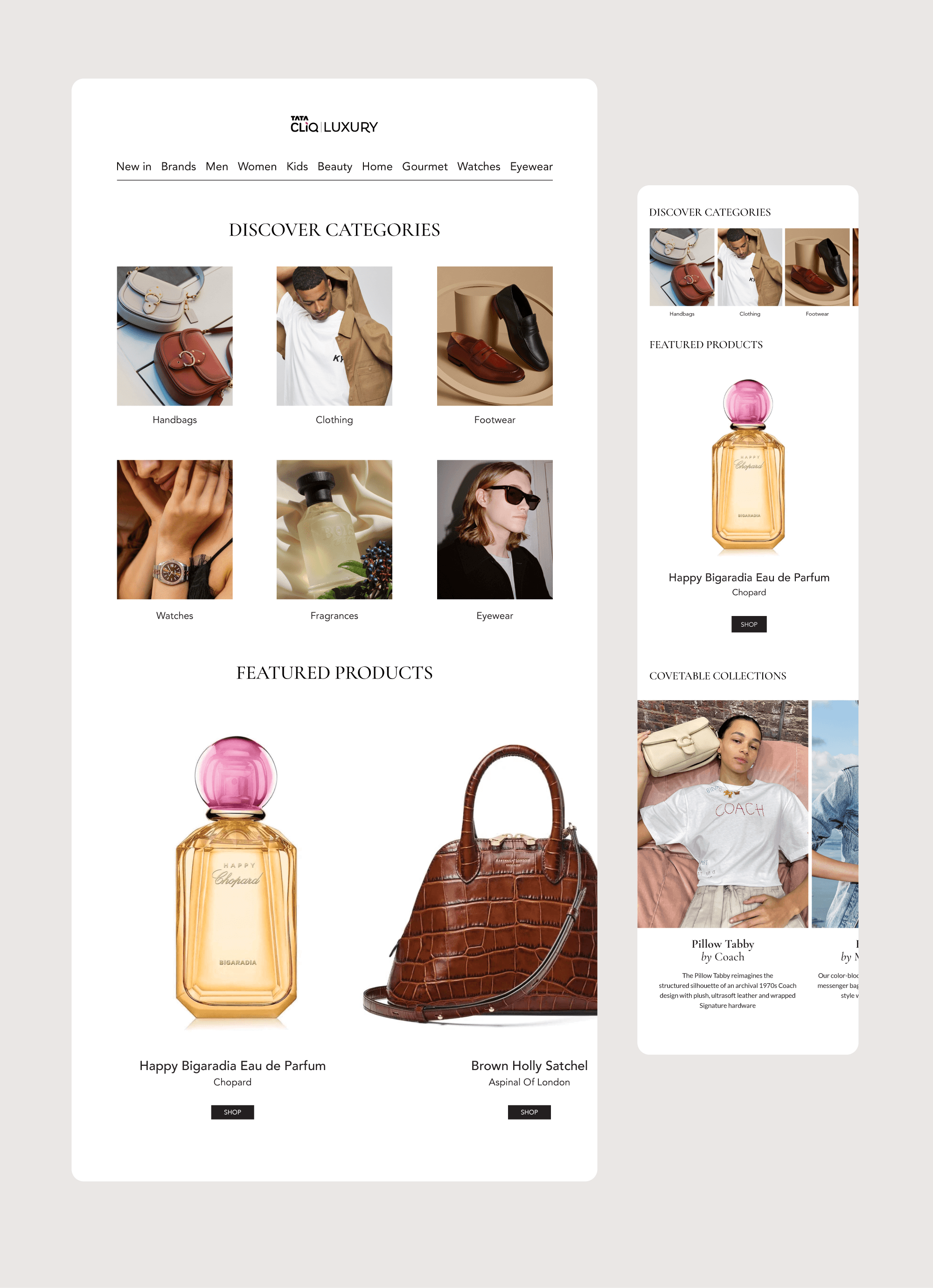 Tata CLiQ Luxury is India’s premier e-commerce platform for high-end fashion, beauty, and lifestyle products. The platform hosts an extensive portfolio of global heritage brands including Bvlgari, Versace, Coach, and Tissot focused on the mindful consumption of authentic, high-craftsmanship goods. The project objective was a comprehensive visual overhaul to transition the platform from a standard marketplace aesthetic to a premium, editorial-led digital experience that aligned with the luxury status of its partner brands.