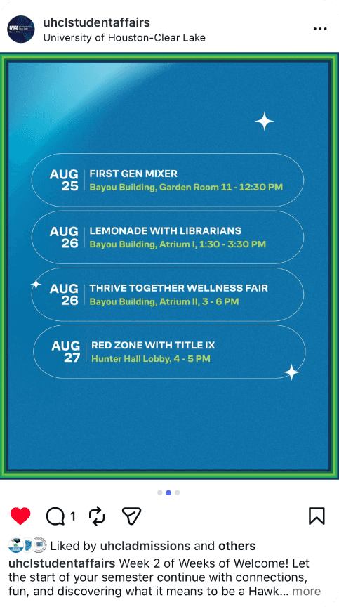 Optimized digital presence by leveraging trending audio, high-energy motion graphics, and platform-specific terminology to resonate with the student demographic. By analyzing performance metrics and engagement data, I refined posting schedules and content formats to ensure maximum reach and community interaction.