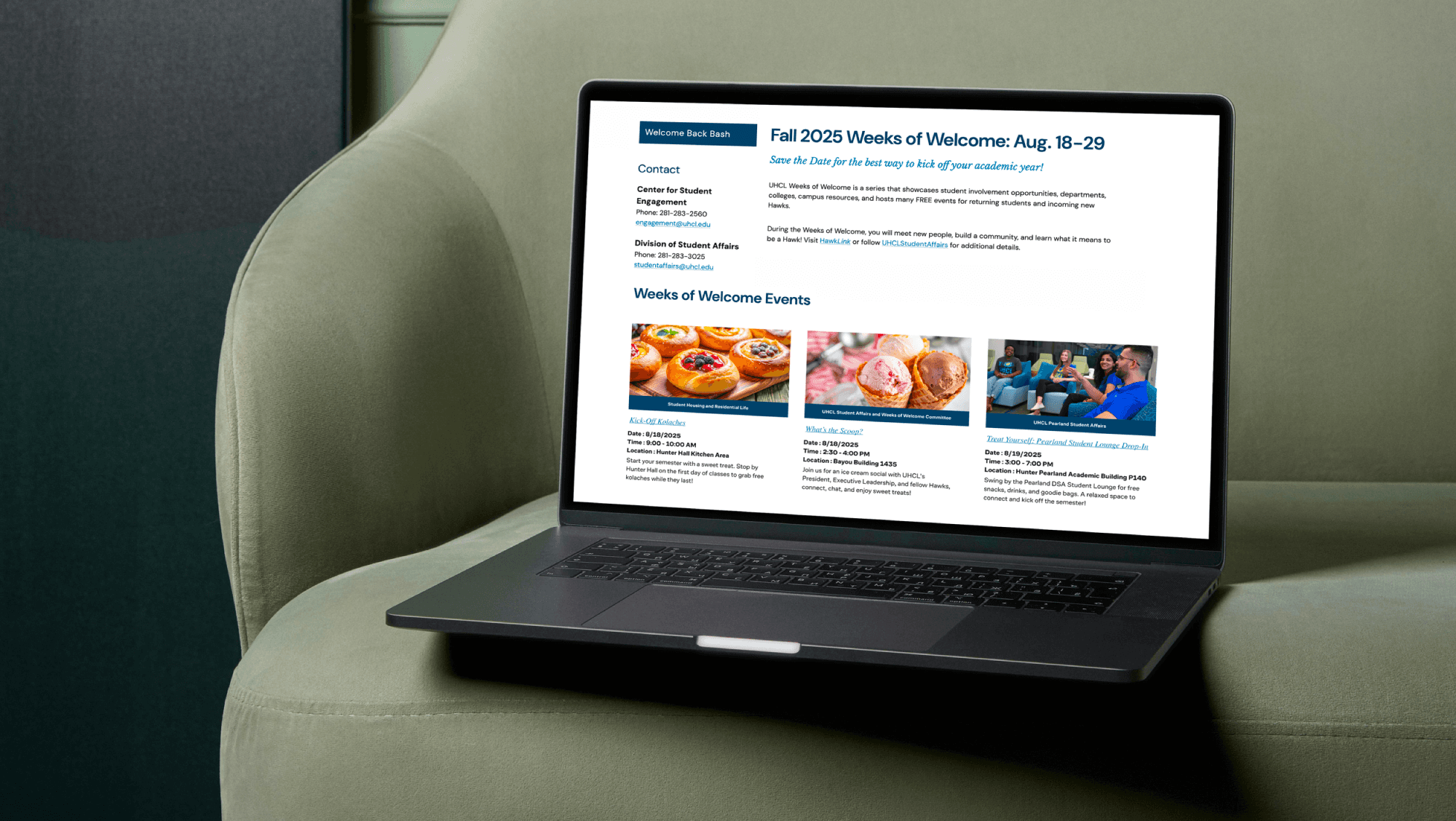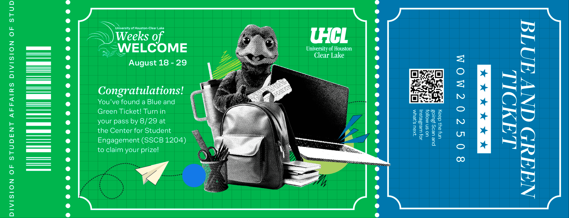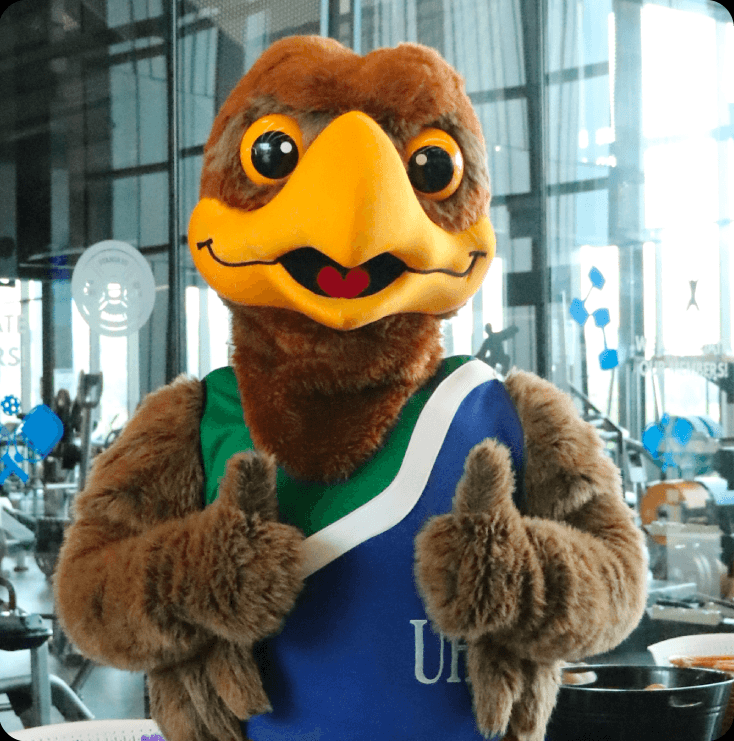 Reimagined the UHCL mascot in a modern rubber-hose illustration style to anchor a 360° campaign. This approachable identity was applied across campus print, stickers, and social media to drive student belonging and event engagement.